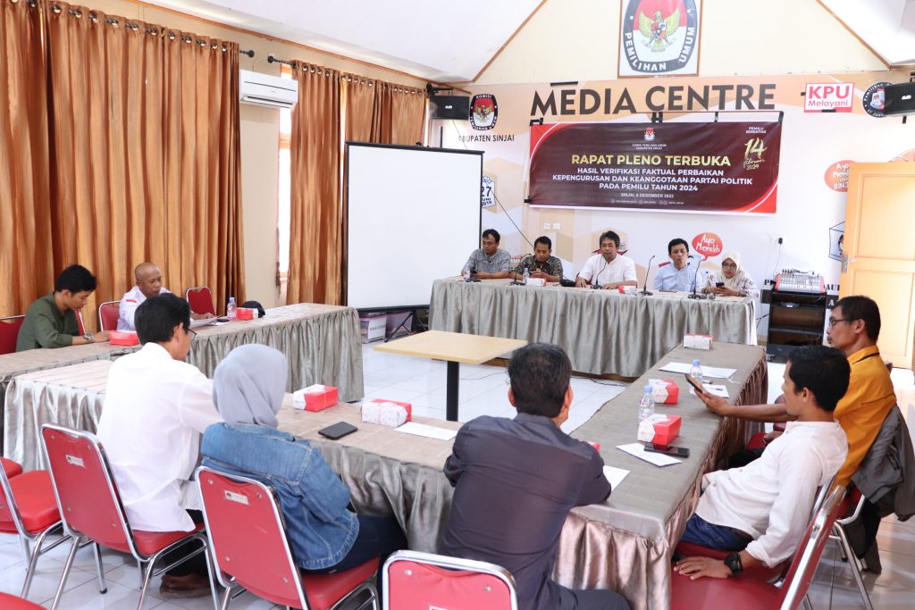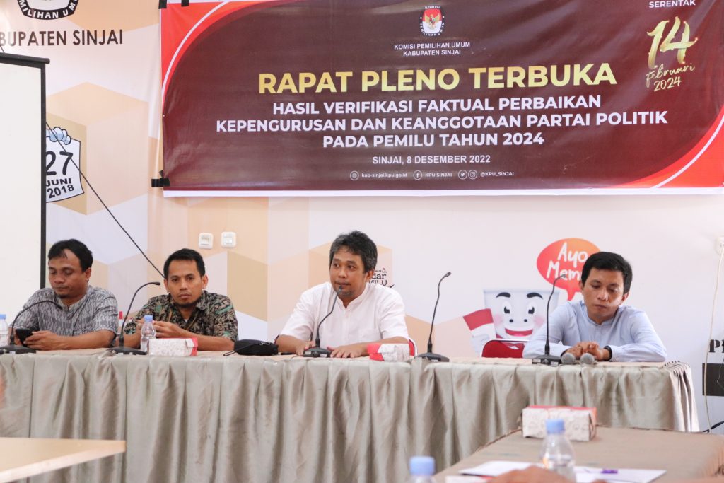 Ahmad Ismail, Anggota Bawaslu Kabupaten Sinjai menghadiri Rapat Pleno Terbuka Hasil verifikasi Faktual Perbaikan kepengurusan dan keanggotaan Partai Politik pada pemilihan Umum 2024, Kamis (08/12/2022)\n\n\n\nSinjai, Badan Pengawas Pemilihan umum (Bawaslu) Kabupaten Sinjai – Anggota Bawaslu Kabupaten Sinjai menghadiri Rapat Pleno Terbuka Hasil Verifikasi Faktual Perbaikan Kepengurusan dan Keanggotaan Partai Politik pada Pemilu Tahun 2024, di aula kantor KPU Sinjai, Kamis (08/12/2022).
