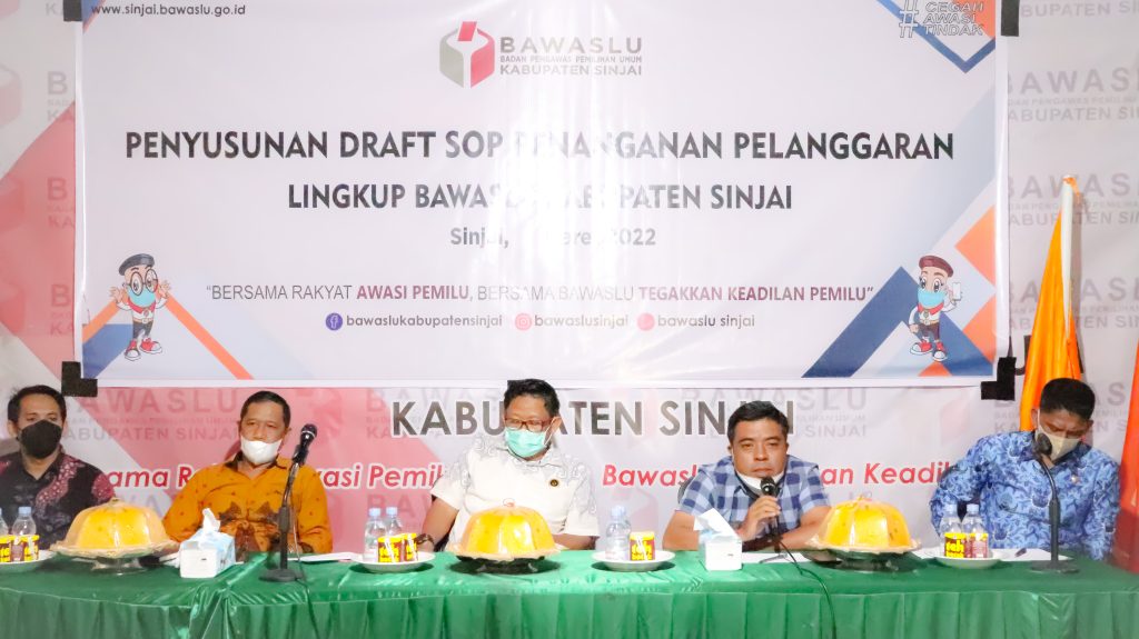 \n\n\n\nSinjai, Badan Pengawas Pemilihan Umum (Bawaslu) Kabupaten Sinjai - Anggota Bawaslu Provinsi Sulawesi Selatan Azry Yusuf memaparkan Draft Standar Operasional Prosedur (SOP) menekankan kepada seluruh jajaran Bawaslu Sinjai untuk mempertajam Hasil pengawasan, laporan hasil pengawasan merupakan inti atom Bawaslu dalam penyelesaikan kasus dugaan pelanggaran, hal ini disampaikan pada kegiatan Penyusunan Draft SOP Penanganan Pelanggaran Lingkup Bawaslu Sinjai, Jumat (18/04/2022).